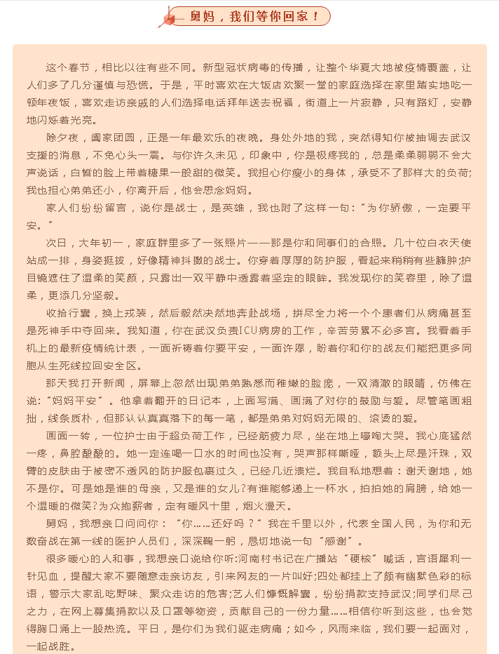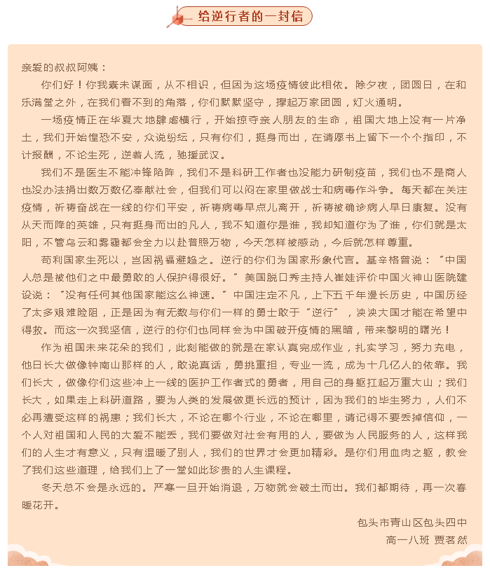 “我为最美‘逆行’者点赞”全区中小学生书信作品选登(第九期)