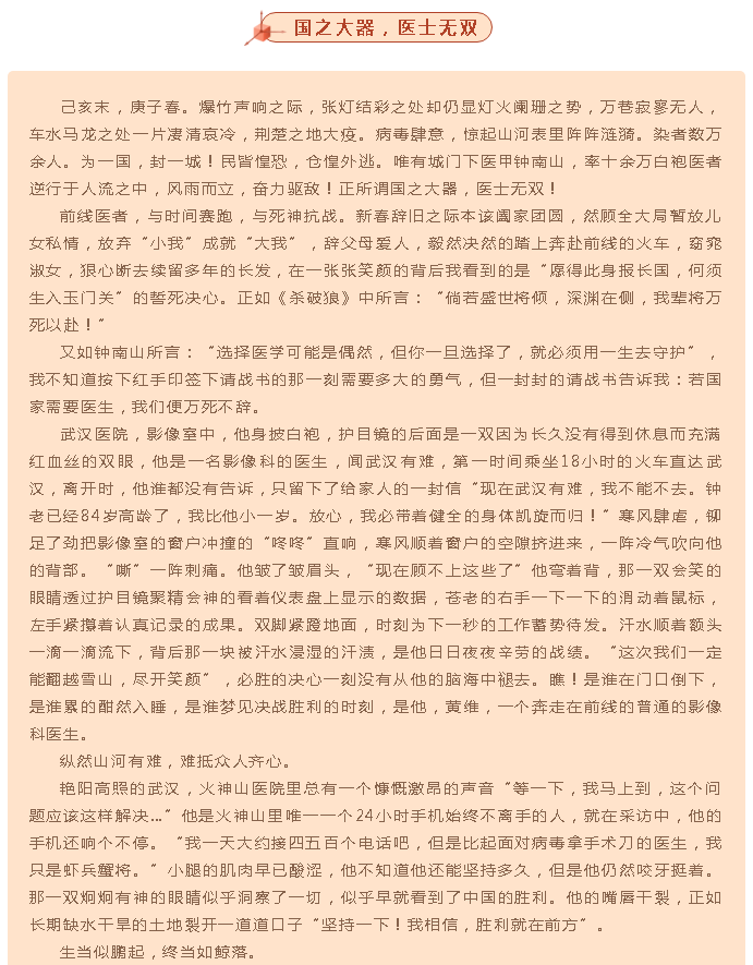“我为最美‘逆行’者点赞”全区中小学生书信作品选登(第八期)