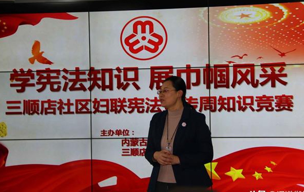在第五个“国家宪法日”和首个“宪法宣传周”期间,为深入贯彻习近平总书记关于加强宪法学习宣传教育的重要指示精神,全面推进宪法走入日常生活、走入人民群众,切实扩大法治宣传教育的影响力和覆盖面,使得宪法精神在基层深入人心、落地生根,12月12日上午,自治区妇联与三顺店社区联合举办了“学宪法知识 展巾帼风采”宪法宣传周知识竞赛活动。