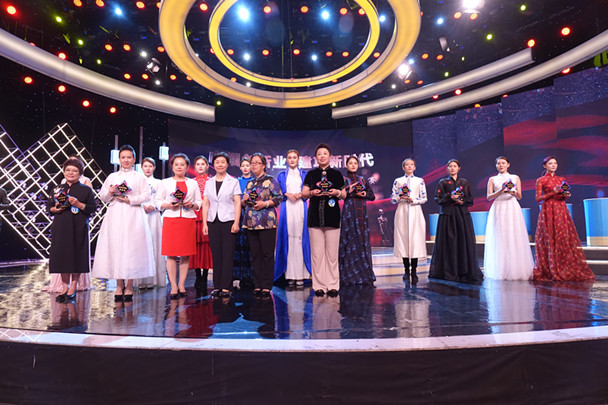 内蒙古自治区妇联党组书记、主席胡达古拉为传承组获奖项目颁奖