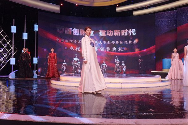 在比赛现场,10余套蒙古族元素时尚现代装以服装秀的形式,向到场观众展示了内蒙古少数民族服饰艺术之美。搭建在决赛场地外围的妇女手工精品展,展出了来自北京、天津、河北、内蒙古、辽宁、吉林、黑龙江七个省市自治区的近500件精美手工作品。参展作品种类众多,包括掐丝珐琅、皮影、葫芦、毛毡刺绣、蒙古袍、辽瓷、草编、桦皮等40多个类别创意独特、美观新颖的产品。多角度、全方位展示了中国妇女手工创业创新大赛北部赛区选手的风采。自治区知名女书法家也为大赛助力添彩,专门围绕本次大赛主题,创作了11幅书法作品。