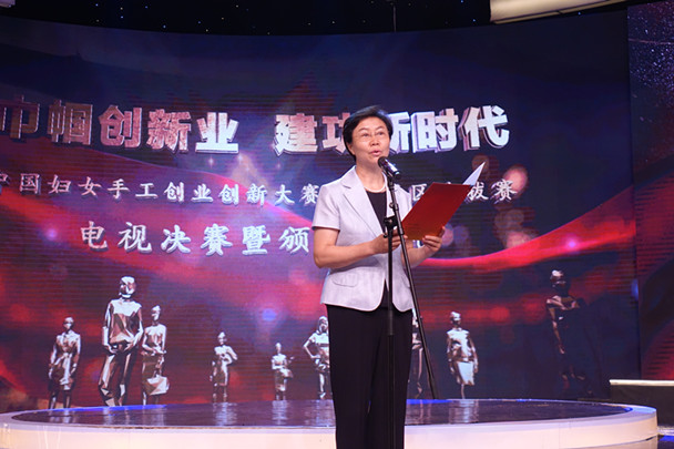 全国政协委员、全国妇联原副主席崔郁为公益组获奖项目颁奖