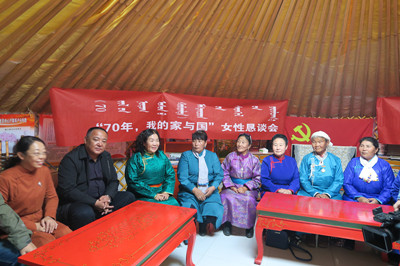16日,在苏尼特右旗阿其图乌拉苏木额尔敦宝拉格嘎查,调研组一行同牧区妇女共同开展“70年,我的家与国”女性恳谈活动。牧民姐妹身着蒙古服饰围坐一起争先恐后发言,党员中心户蒙古包里挤满了人,也挤满了欢声笑语,大家对比过去和现在的生活,从日常三餐、衣饰穿着、交通住房到工作收入、业余生活、文化传承等,谈变化、谈收获、谈梦想。热烈讨论之余,大家还一起唱起了美好生活的幸福赞歌,悠扬动听的旋律传出蒙古包,久久回荡。