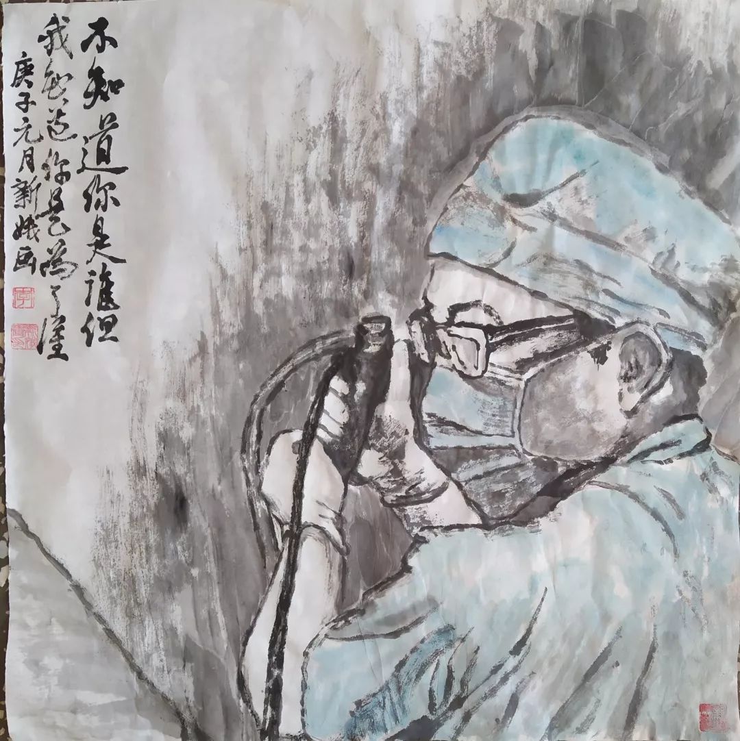 巴彦淖尔市农民李新娥是一名绘画爱好者,她宅家创作的抗疫英雄作品是不是很有大家风范!