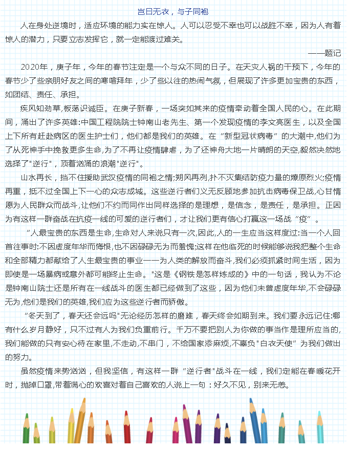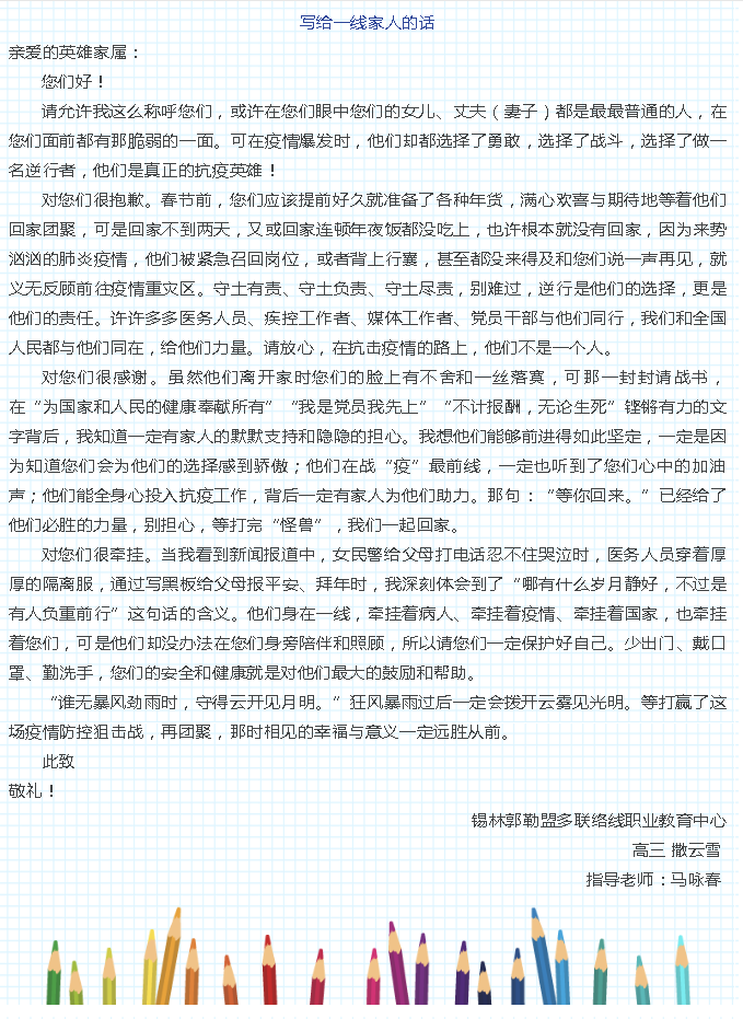 “我为最美‘逆行’者点赞”全区中小学生书信作品选登(第一期)