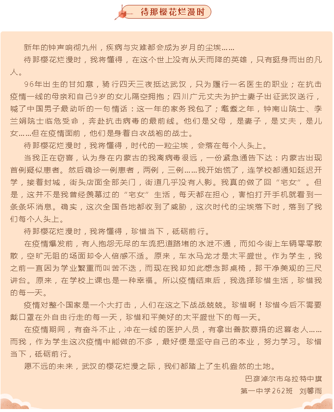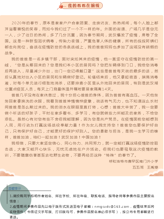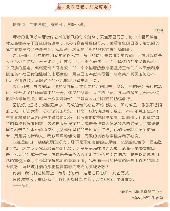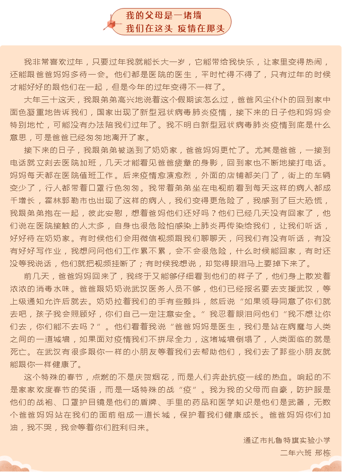 “我为最美‘逆行’者点赞”全区中小学生书信作品选登(第七期)