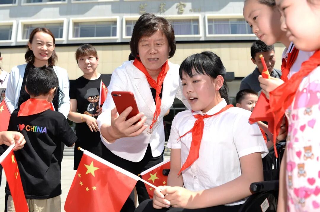 6月1日,“携手过‘六一’有‘鄂’也有你”“六一”主题活动暨2020中国儿童发展论坛开幕式在中国儿童中心举办。全国妇联主席沈跃跃,全国妇联党组书记、副主席、书记处第一书记黄晓薇,全国政协人口资源环境委员会主任李伟,国务院发展研究中心副主任、党组成员王安顺出席活动,并同儿童、教师一起学习习近平总书记“六一”寄语精神,参加升旗仪式,向孩子们祝贺节日。庄严的升旗仪式后,沈跃跃一行与孩子们亲切交流。当听到孩子们说“习爷爷的节日祝贺,是我们收到的最好的节日礼物”时,他们鼓励孩子们牢记习爷爷的嘱托,从小立志向、有梦想,为实现中华民族伟大复兴的中国梦时刻准备着。沈跃跃对抗疫一线医务工作者的孩子亲切地说,“你们的爸爸妈妈是大勇士,你们也是小勇士,希望你们以爸爸妈妈为榜样,努力做祖国和人民需要的好孩子!”