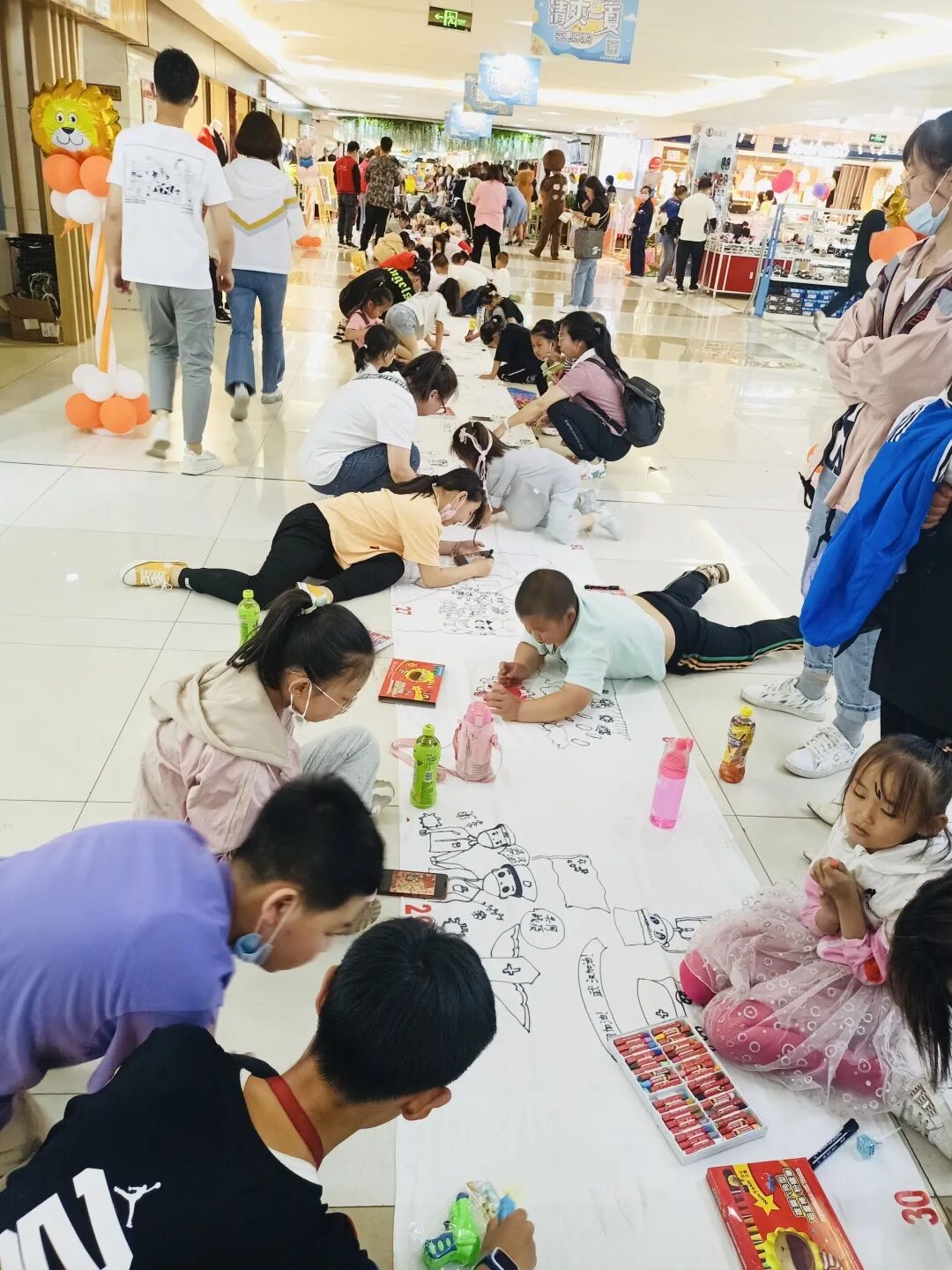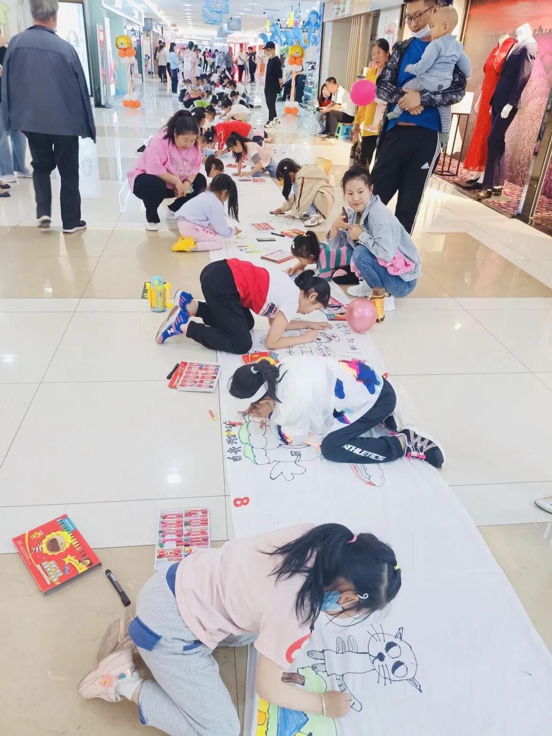 5月31日下午,东胜区图书馆携手丹青美术教育机构在万正商厦负一层共同举办“放飞梦想 欢度六・一”亲子百米画卷活动,在丰富儿童精神文化生活的同时,陶冶情操,发挥想象和绘画能力。 活动现场,白色的布卷在地上一字铺开,孩子们趴在长卷上,用略显稚嫩的小手大胆地在白布上挥毫泼墨、细心涂抹。一旁的家长们便当起了孩子的小助手,帮孩子铺平画布、传递彩笔,偶尔给出建议指导。百米画卷上,有的画出了自己居住的水碧天蓝的家园,有的描绘着自己五彩斑斓的梦想,有的彩绘着自己与同伴快乐的游戏……一条线、一点墨,闪耀着孩子们创作的灵光、洋溢着孩子们快乐的童年生活。孩子们或跪、或趴、或蹲,挥笔勾线、泼墨涂色,经过一个多小时的创作,一幅幅栩栩如生的画面逐一呈现,长长的白色画卷变成了一件件色彩斑斓的艺术品。 每一个孩子都是有创造力的天才,百米画卷画出了孩子们的希望和梦想。本次活动,让他们体验了自由表达和创造的快乐,促进了亲子之间的交流,抒发了孩子对未来梦想的向往,也让孩子们提前过了一个充实而有意义的“六一儿童节”。 -END-