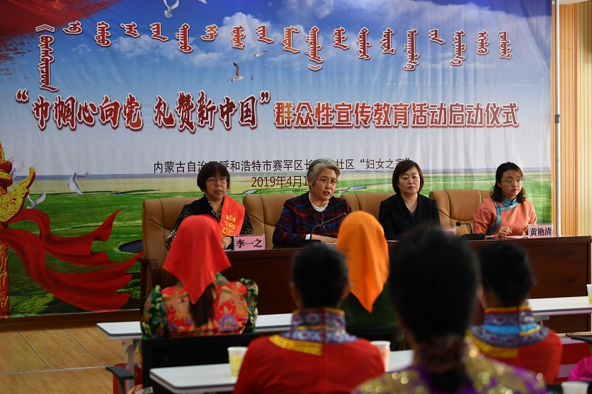 为庆祝中华人民共和国成立70周年,深入学习宣传贯彻习近平新时代中国特色社会主义思想,习近平总书记在同全国妇联新一届领导班子成员集体谈话时的重要讲话精神,落实中国妇女十二大目标任务,按照《全国妇联关于在广大妇女和家庭中开展“巾帼心向党礼赞新中国”群众性宣传教育活动的通知》要求,自治区妇联面向全区妇女和家庭开展“巾帼心向党 礼赞新中国”群众性宣传教育活动。4月13日上午,活动全面启动,自治区妇联组织30个基层“妇女之家”参与启动,全国妇联和各级妇联执委所在农村、社区“妇女之家”率先参与,配合全国形成千个社区“妇女之家”同步开展活动的声势。