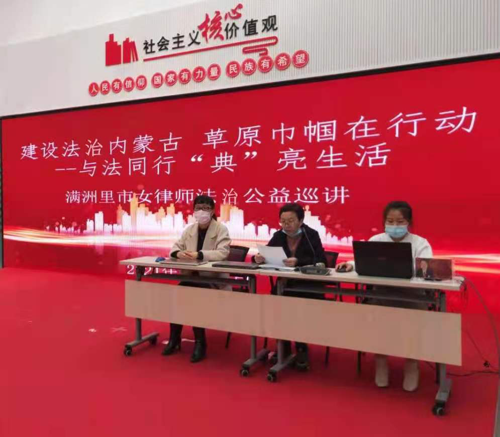 从3月上旬起自治区妇联、司法厅、律师协会联合举行“建设法治内蒙古 草原巾帼在行动”——与法同行“典”亮生活暨百名女律师百场法治公益巡讲活动。