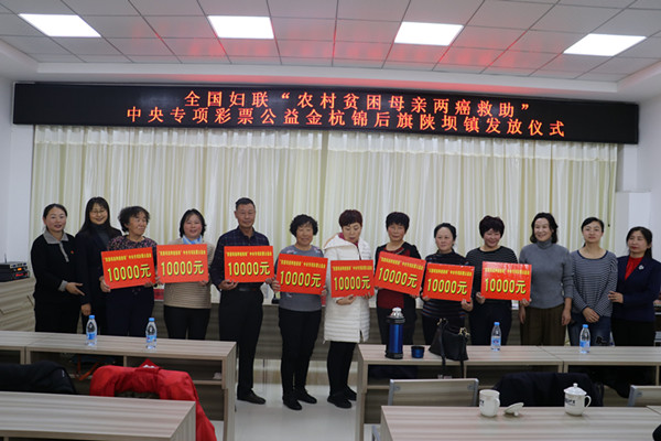 为帮助贫困母亲改善生存条件,提高生活水平,太旗妇联将农村贫困母亲两癌救助工作作为广大妇女民生实事,最大限度地把这一项惠及农牧区贫困妇女的公益项目办实,使真正需要帮助的患乳腺癌和宫颈癌的贫困妇女受益。在基层妇联的积极参与下,旗妇联在全旗农牧区范围内深入细致地开展了“两癌贫困母亲救助项目”宣传、筛查、申报、救助工作。根据锡妇儿工委办字〔2019〕9号文件及有关会议精神,对2018年经全国妇联审核通过的26名进行了手术治疗的患浸润性乳腺癌、2B以上宫颈癌农村贫困母亲进行救助。
